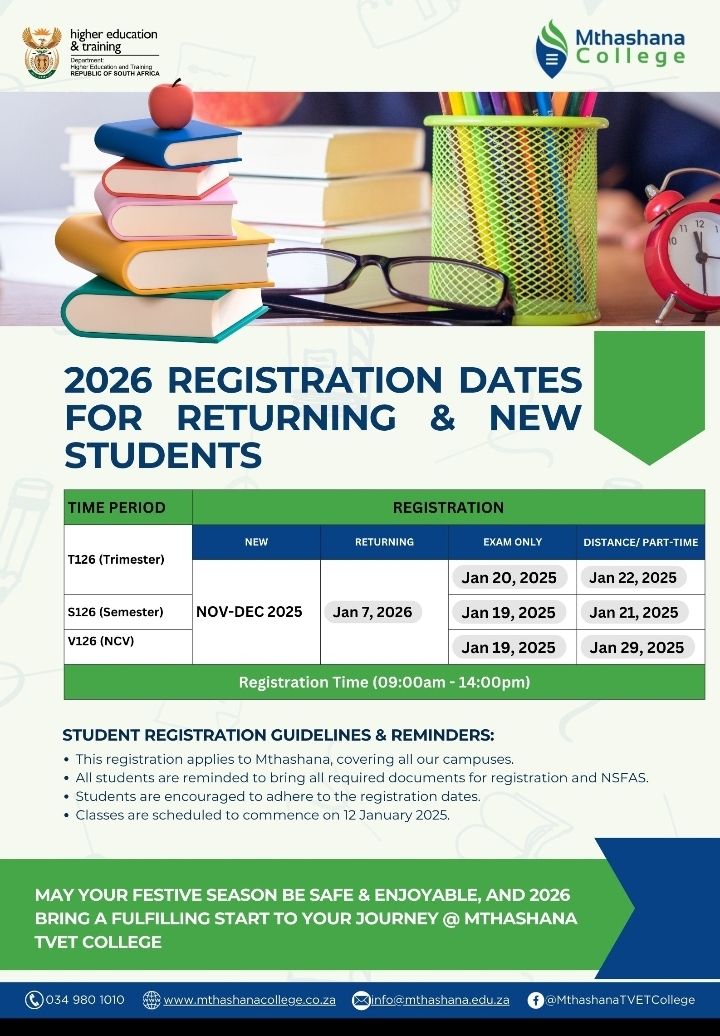 About The Event Location 266 South Street, Vryheid, 3100 All Campuses + Google Map Cost Free Event date January 20, 2026 Event time 9:00 am - 2:00 pm Total Slot 0 Booked Slot 0 This event has expired